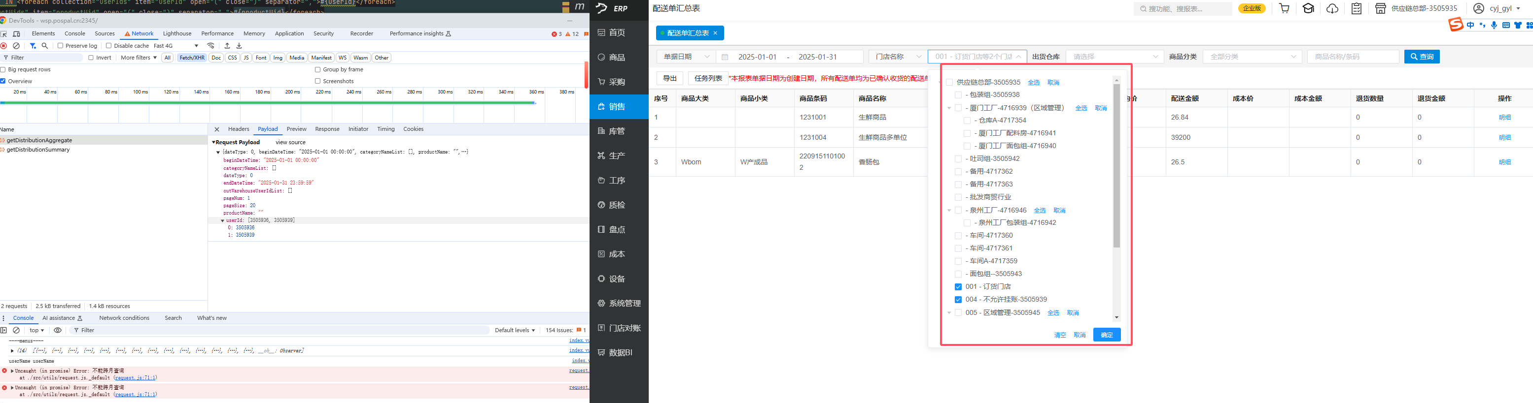 7. 配送单汇总表门店名称公有组件支持级联选择