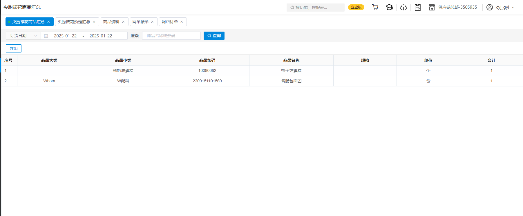 14. 增加报表【央厨裱花商品汇总】,置于销售→预订单/网单
