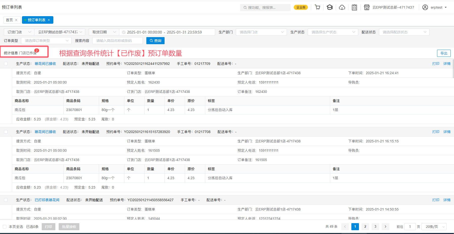 19. 预订单列表增加【统计信息 门店已作废】,根据查询条件统计【已作废】预订单数量