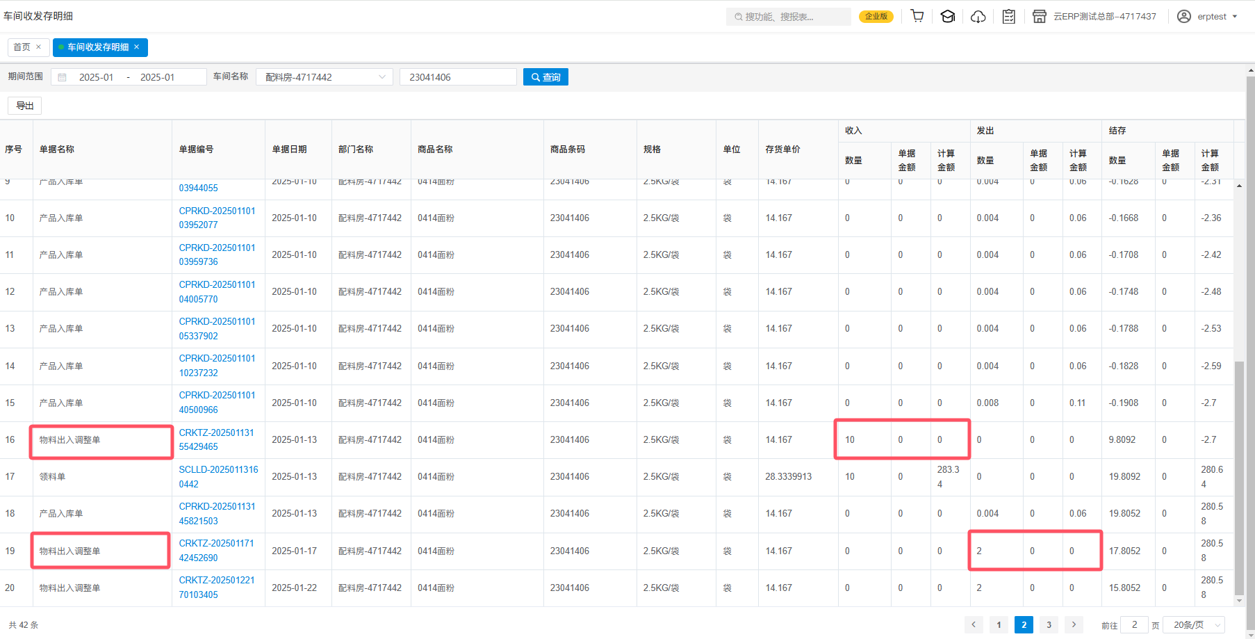 21. 车间收发存明细,物料出入调整单【计算金额】调整为0,不再按数量*车间存货成本单价计算